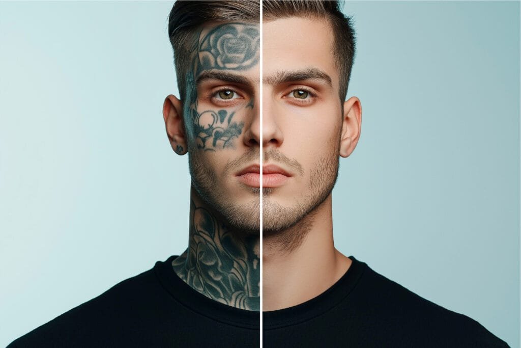 تستخدم إزالة الوشم بالليزر نبضات ضوئية عالية الكثافة لتحطيم جزيئات الحبر في الوشم، مما يسمح لجهاز المناعة في الجسم بالتخلص منها تدريجيًا.